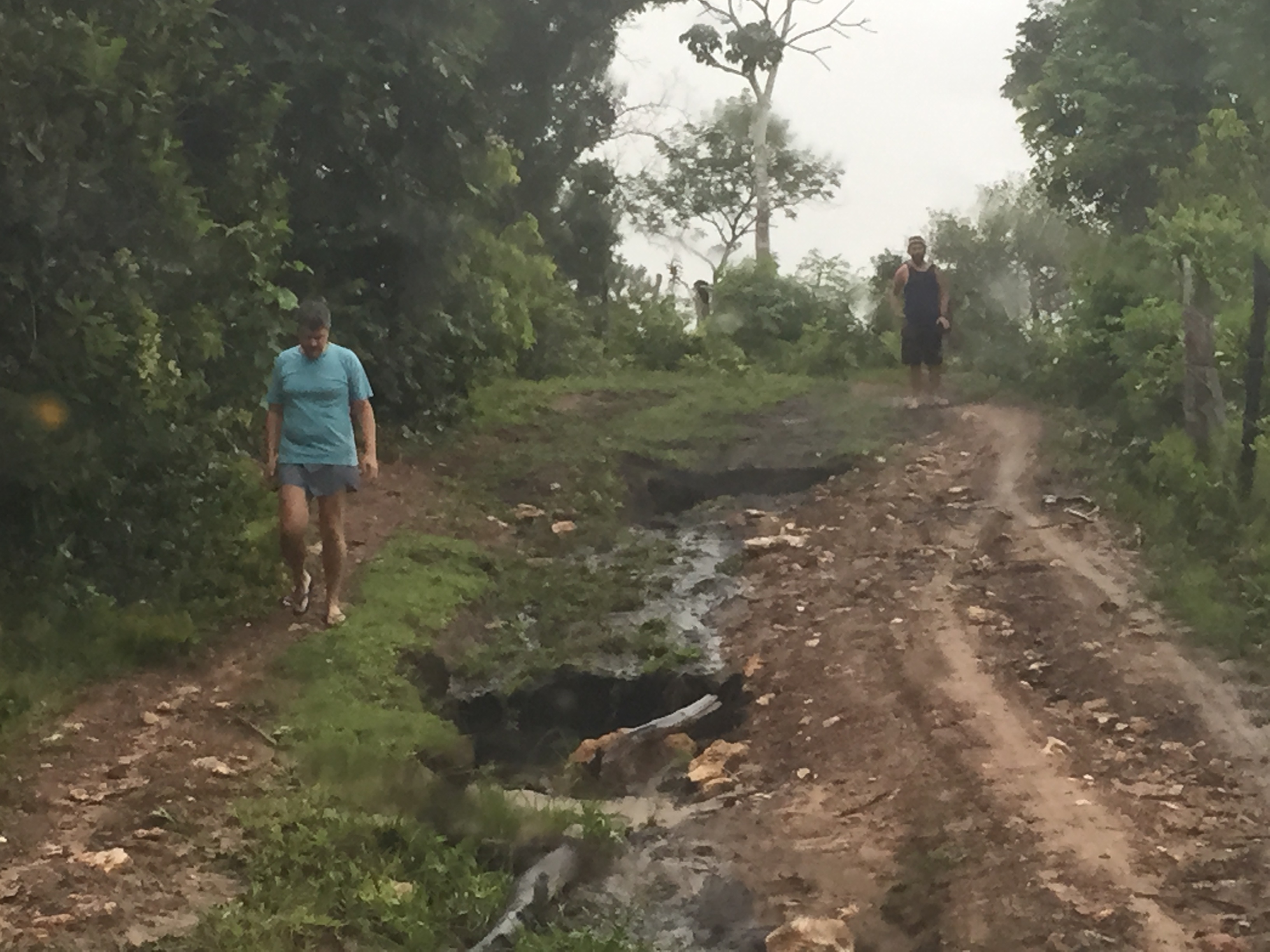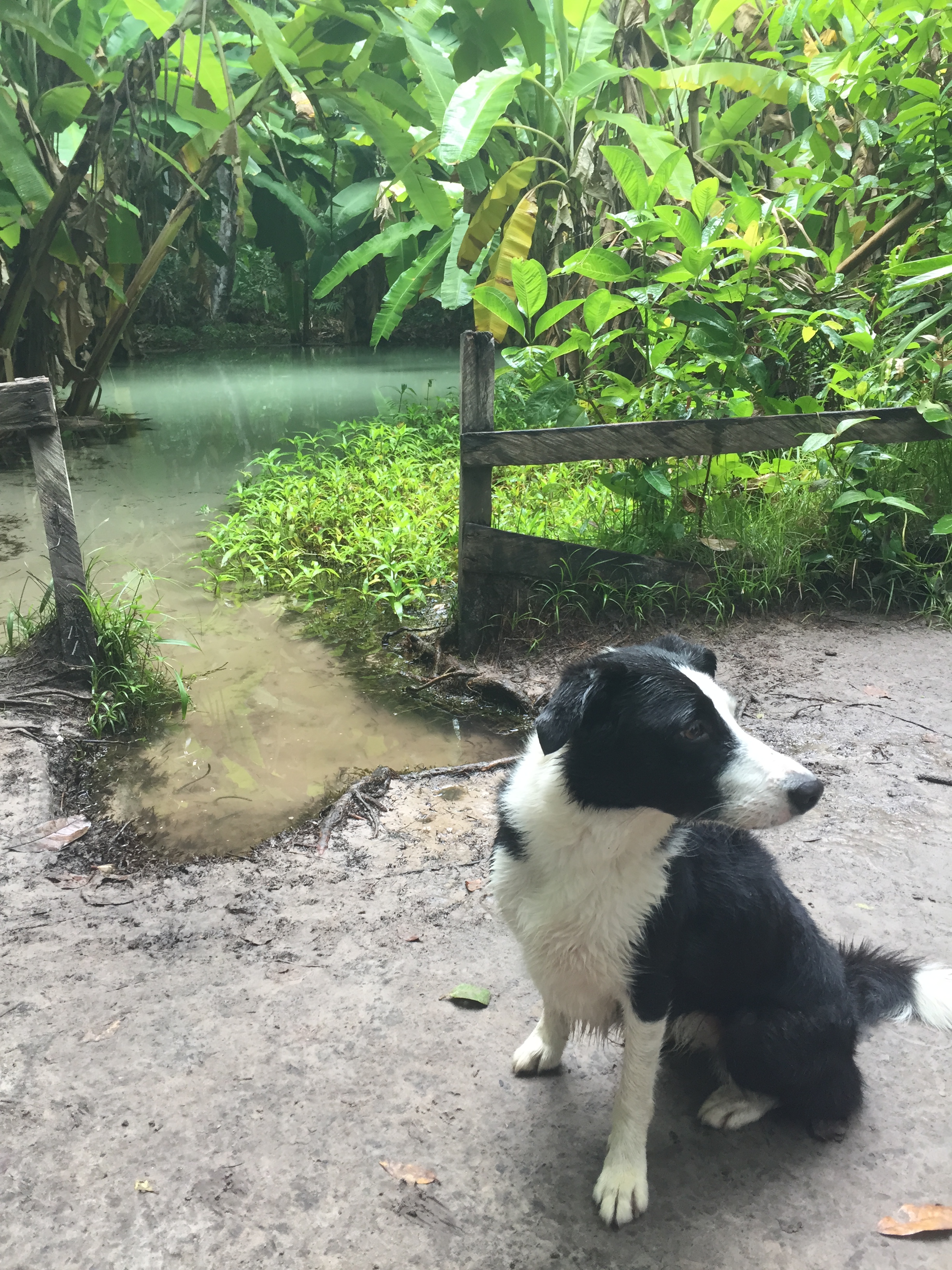 Saimos as 17:20 sentido ao encontro dos rios. 17:33 percebemos que estávamos perdidos. Retornamos. As 18:00 desistimos do encontro das águas pois chovia muito e no final da trilha nos deparamos com uma casa e ninguém atendeu e depois entendemos que era por ali a entrada, mas que estava fechada mesmo a passagem naquela hora.