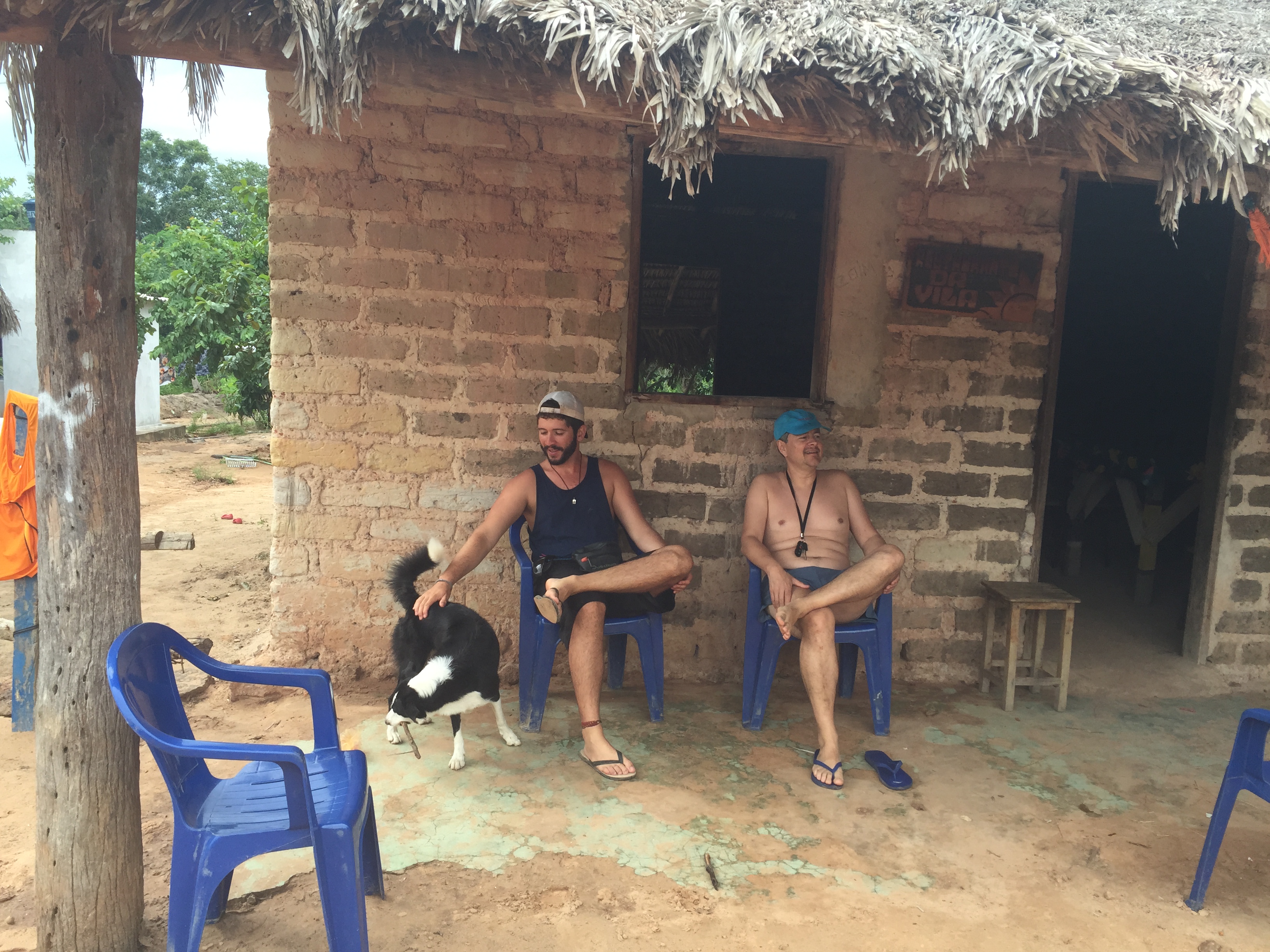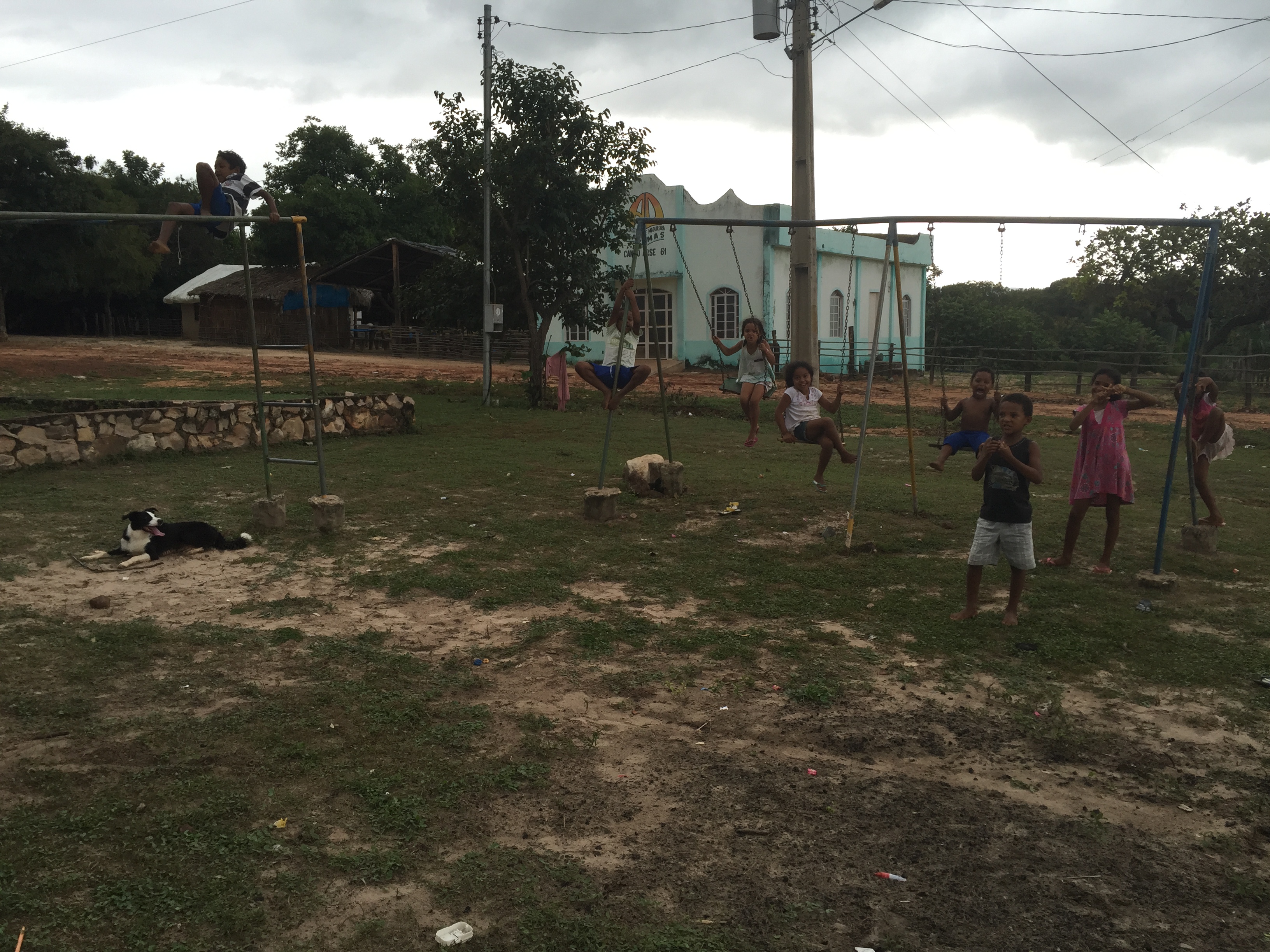 Durante a espera, Ezequiel (rola bosta) trepava no pescoço do Hugo enquanto que outras 10 / 20 criancas gritavam por “ŌMI”, a maneira que encontravam para chamar atencao dos 3 homens: Mauricio, Hugo e Ozzy. Assitimos ao show de malabarismo das criancas no parquinho, o cachorro cupim e a farra das criancas brincando com a Zuppy.