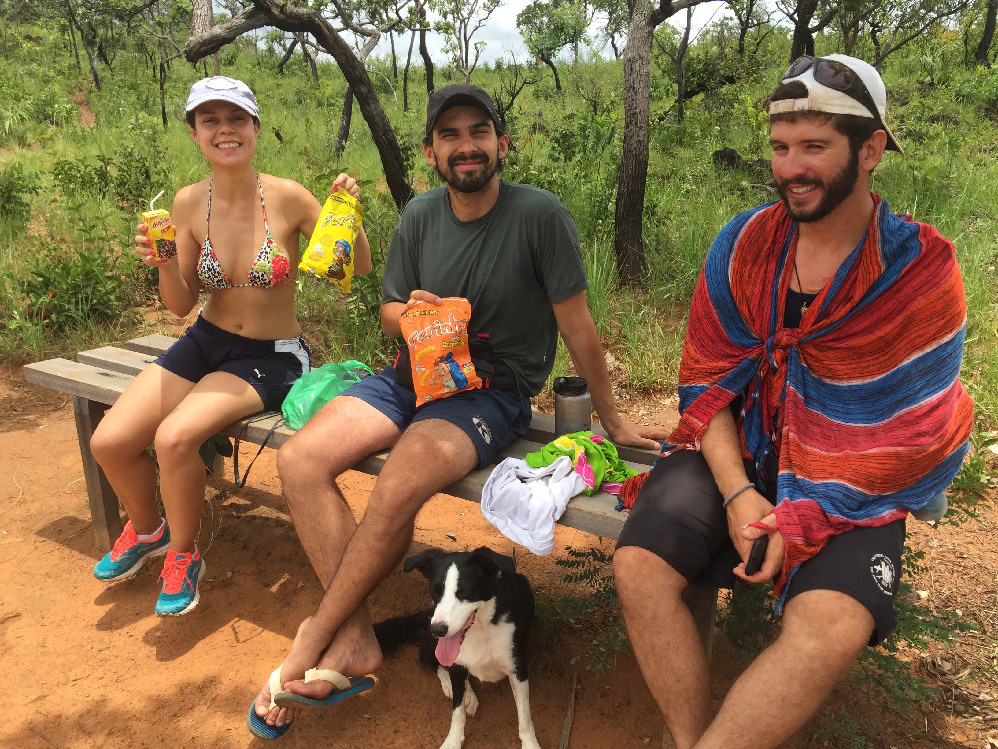 Estávamos com muito calor da caminhada e assim que o Mauricio viu a ponte de 80 metros do rio novo, sugeriu um mergulho. Das 13:00 às 13:30 nadamos bastante, inclusive a Zuppy nadou pela primeira vez.