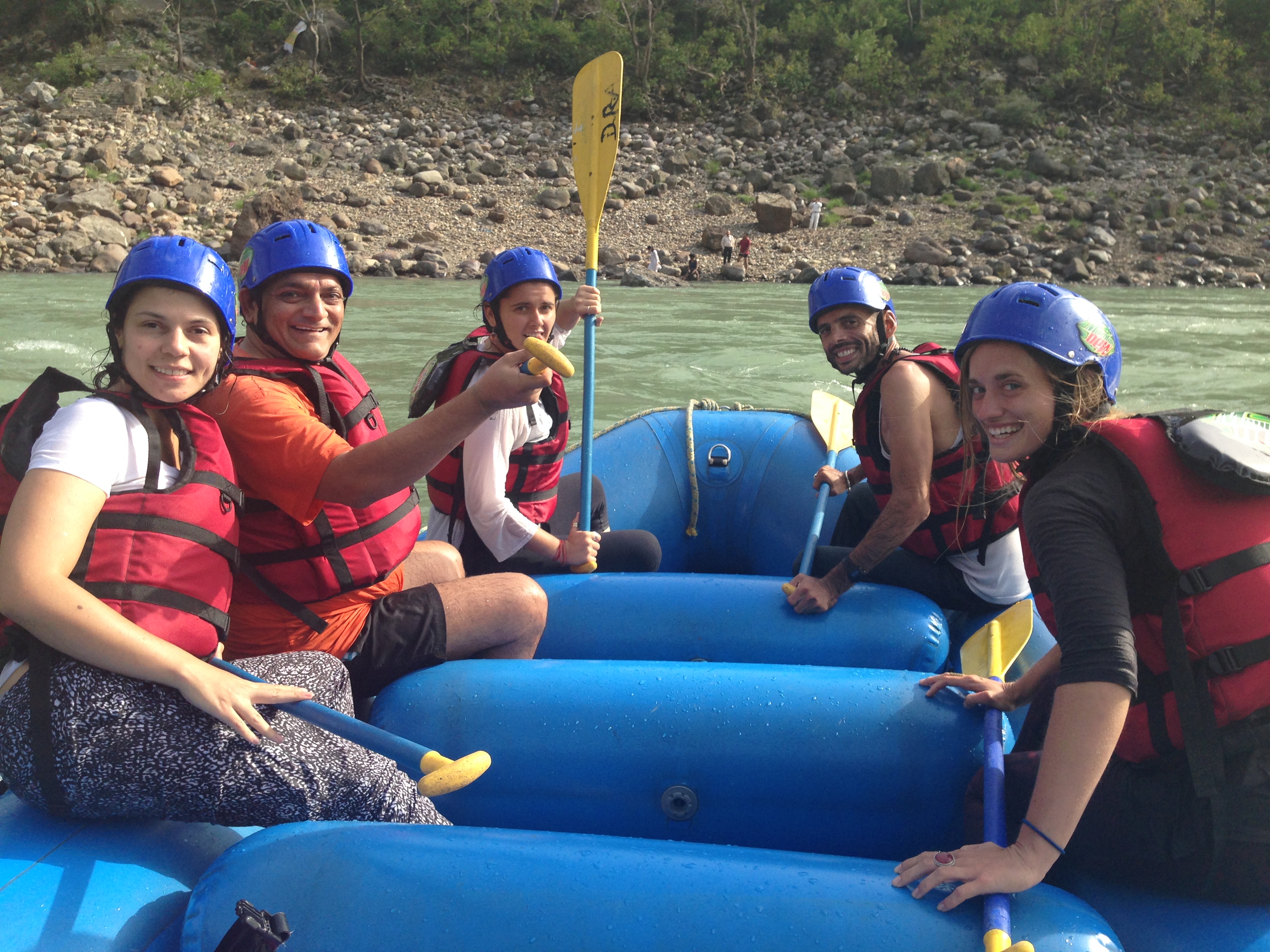 Com os pés uma pessoa levanta a outra, que com equilíbrio e postura se mantém totalmente na horizontal apenas com o apoio na região dos quadris. A vista do ganges infinito, os movimentos leves do rio e a manutenção naquela postura de equilíbrio foi uma sensação única e incrível. Agradeço a Yara, Ola, Atul e Fed por isso.A poluição do rio é mais concentrada em Varanasi, onde não estive. Aqui, porém, se diz que sim, também é poluída em Rishikesh, mas entrei na agua quase todos os dias e não acho que me fez nenhum mal. Wikipedia diz: “Rio Ganges recebe diariamente 2,9 bilhões de litros de resíduos tóxicos, é um dos rios mais poluídos do mundo”