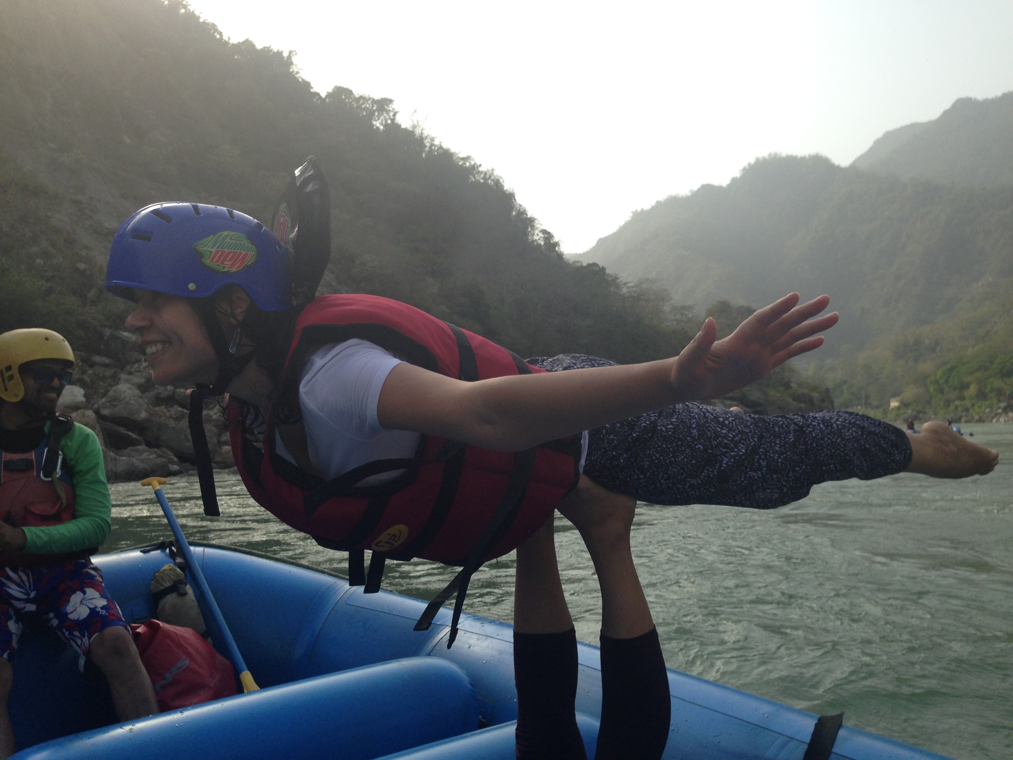 Foi no rio também que eu e mais 4 pessoas queridas passamos uma das tardes mais deliciosas da minha vida. Fizemos um rafting, mergulhamos, nadamos, relaxamos e praticamos Acro Yoga, que mistura Yoga com acrobacia. Dentro do bote, fiz a postura de “voar”.