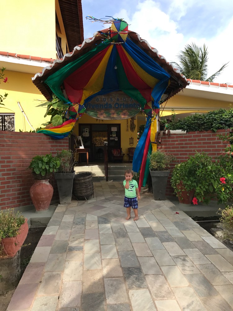 A pousada chama Vivenda Oriente. Ela tem sua área de lazer com vista pro mar e a apenas poucos passos dele. Da nossa varanda do apartamento no primeiro andar dava apenas pra ver o mar e barquinhos distantes. A brisa forte agitava as ondas ferozmente e o som vibrava a agitação do mar que em nós se transformava em paz. Ali é possível perceber que na natureza nada é constante, tudo se move o tempo todo a comecar de nossos cabelos, roupas, e até a comida na mesa voava tamanha a força dos ventos. As noites na beira da piscina, em meio a brincadeiras com o bebê, pareciam um cenário ilusório. Apesar de um mar agitado, ondas ruidosas, coqueiros arqueados, a sensação de insegurança no início logo da lugar ao prazer de quase ser levado pelo vento quando você nunca se sentiu tão preso a terra. De ter a pele e o corpo prestes a esfriar quando você nunca se sentiu tão aquecido. De ter vontade de voar quando de fato já assim está. Logo a ventania, o cheiro, sensação de liberdade te deixam anestesiados, esvaziando quaisquer tensões e até mesmo pensamentos. Dali não há mais nada além de agradecer o privilégio.