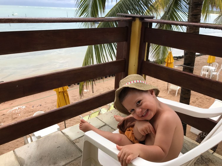 Organizamos essa viagem na manhã de um domingo e às 16:00 embarcamos em Guarulhos rumo a Recife. O Mauricio comprou a passagem, alugou carro e, como eu nao tinha como ir ao aeroporto, reservou um uber pra ir me buscar . Enquanto isso eu arrumei as malas que se reduziram a uma mochila super lotada, uma malinha pequena, um carrinho de bebê e um bercinho. De qualquer forma, isso mais o próprio bebê parecia muita bagagem pra eu carregar sozinha. Por fim, foi super tranquilo. O motorista me ajudou a embarcar e descarregar a bagagem. Cheguei até o check in usando aqueles carrinhos disponíveis no aeroporto e levei o Dimitri em cima das bagagens. Despachei o berço e a mala. Acabei embarcando com o carrinho e mochila. Dentro da mochila grande eu trouxe uma pequena com alguns brinquedos, livro e itens essenciais pro Dimitri como água , frutas, castanhas e meu livro caso ele dormisse, o que não aconteceu…