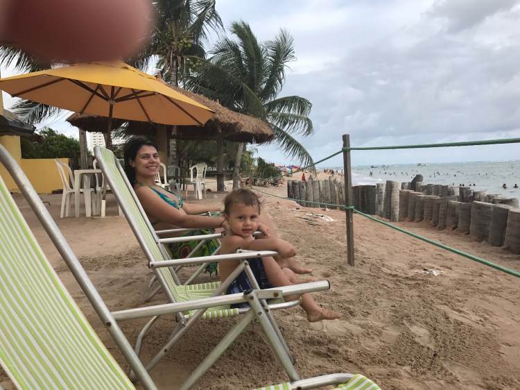 Organizamos essa viagem na manhã de um domingo e às 16:00 embarcamos em Guarulhos rumo a Recife. O Mauricio comprou a passagem, alugou carro e, como eu nao tinha como ir ao aeroporto, reservou um uber pra ir me buscar . Enquanto isso eu arrumei as malas que se reduziram a uma mochila super lotada, uma malinha pequena, um carrinho de bebê e um bercinho. De qualquer forma, isso mais o próprio bebê parecia muita bagagem pra eu carregar sozinha. Por fim, foi super tranquilo. O motorista me ajudou a embarcar e descarregar a bagagem. Cheguei até o check in usando aqueles carrinhos disponíveis no aeroporto e levei o Dimitri em cima das bagagens. Despachei o berço e a mala. Acabei embarcando com o carrinho e mochila. Dentro da mochila grande eu trouxe uma pequena com alguns brinquedos, livro e itens essenciais pro Dimitri como água , frutas, castanhas e meu livro caso ele dormisse, o que não aconteceu…