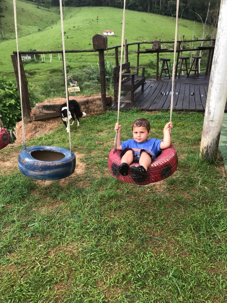 Assim que entramos na cidade percebemos que a infra turística é limitada com poucas opções de hotel e restaurante. Como era hora do almoço resolvemos seguir direto pra Cachoeira dos Pretos e no caminho paramos no Caipirão onde aliás voltamos a comer no dia seguinte justo porque gostamos e porque também não encontramos outra opção à altura. Bem espaçoso, com ótimo serviço e culinária típica de Minas no fogão a lenha. Preço fixo de aproximadamente 30 por pessoa já incluindo sobremesa. Os pequenos não pagam. E o melhor é a vista e os brinquedos: