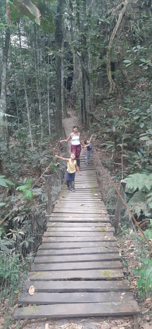 Penso que duas coisas principais me incomodaram nesse passeio, sendo que a primeira se amenizaria se não fosse a segunda. Primeiramente, me incomodou o custo do passeio que durou das 13 às 15:30. Vamos lá: é cobrado R$170,00 para visitação, com almoço que custava 30 reais. ..até aí, caro mas ok. Só que além disso, pagamos para uma guia o valor de R$180,00. Ou seja, total R$350. O Mauricio se negou a pagar e aproveitou para trabalhar. Portanto, esse valor de R$350,00 apenas pra mim e pra crianças.. Agora o segundo ponto, a guia era muito despreparada, não agregou absolutamente em nada. Zero mesmo. A trilha era bem tranquila e se investissem minimamente em sinalização qualquer um poderia fazer sem guia. Ou poderiam até manter a guia mas ela deveria ser muito melhor treinada. Poderia falar sobre cultura local, vegetação, geologia etc. Ao contrário, além de não trazer nada, ainda colocava medo nas crianças falando que tem aranha, cobra, que vai cair etc etc
