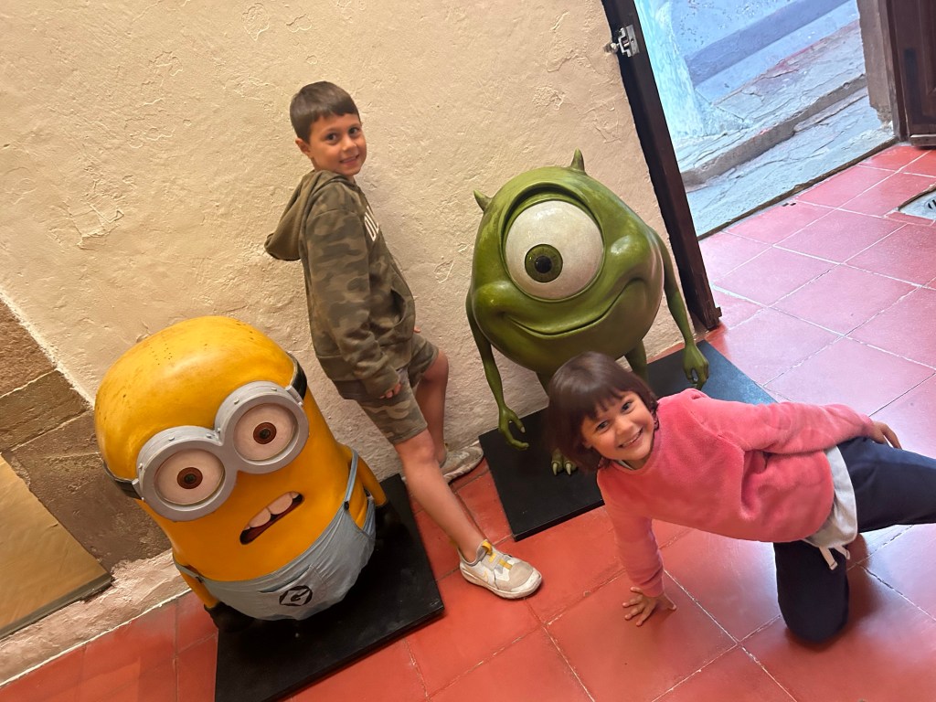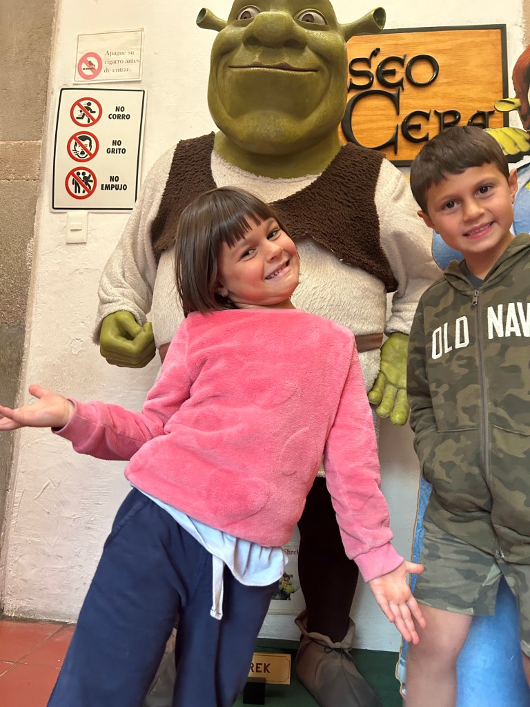 No museu de cera vimos o Shrek e os minions.