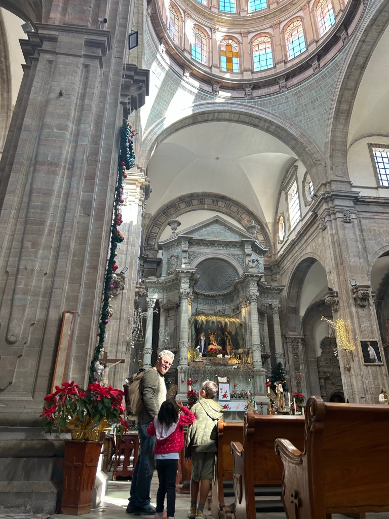 No caminho passamos pelo Mercado Hidalgo e pela Paróquia de Imaculado Coração. Apesar da pressa para acharmos hotel antes de anoitecer, não conseguimos passar por esses pontos sem apreciar e tirar fotos.